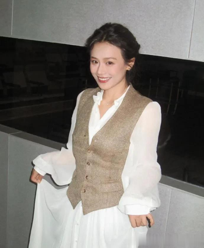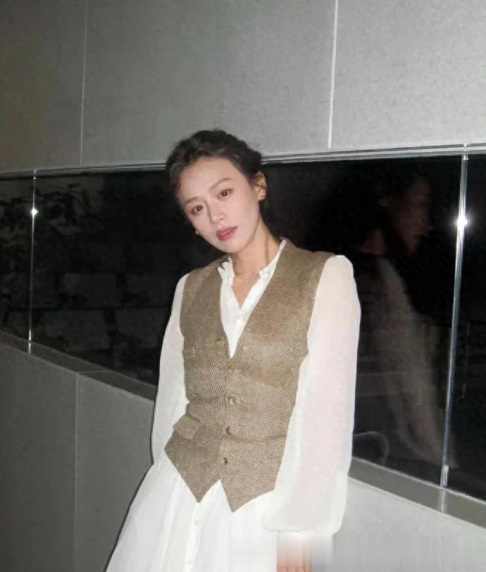 马思纯瘦身成功后真时髦! 穿白色衬衫裙+V领马甲, 简约又高级!